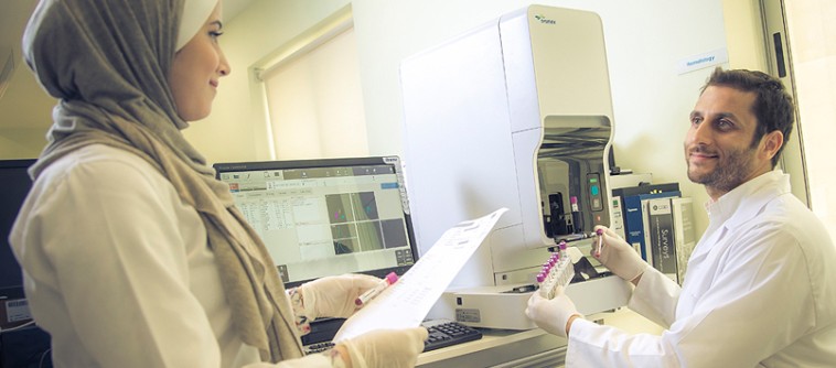 The hematology department utilizes a state of the art technology in its daily analysis e.g. Flow Cytometry in leukemias and NK cell assessment, capillary electrophoresis for Hb and serum electrophoresis, a coagulation lab, special immuno staining as well as molecular biology techniques e.g. PCR and NGS especially in genetically inherited hematological disorders like Alpha and Beta thalassemia, sickle cell anemia and thrombophilia mutation.